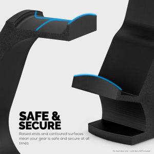 可容納最大的遊戲耳機,有角度的設計讓它們自由懸掛,不會幹擾控制器,保持耳機安全,讓您的遊戲空間乾淨整潔。